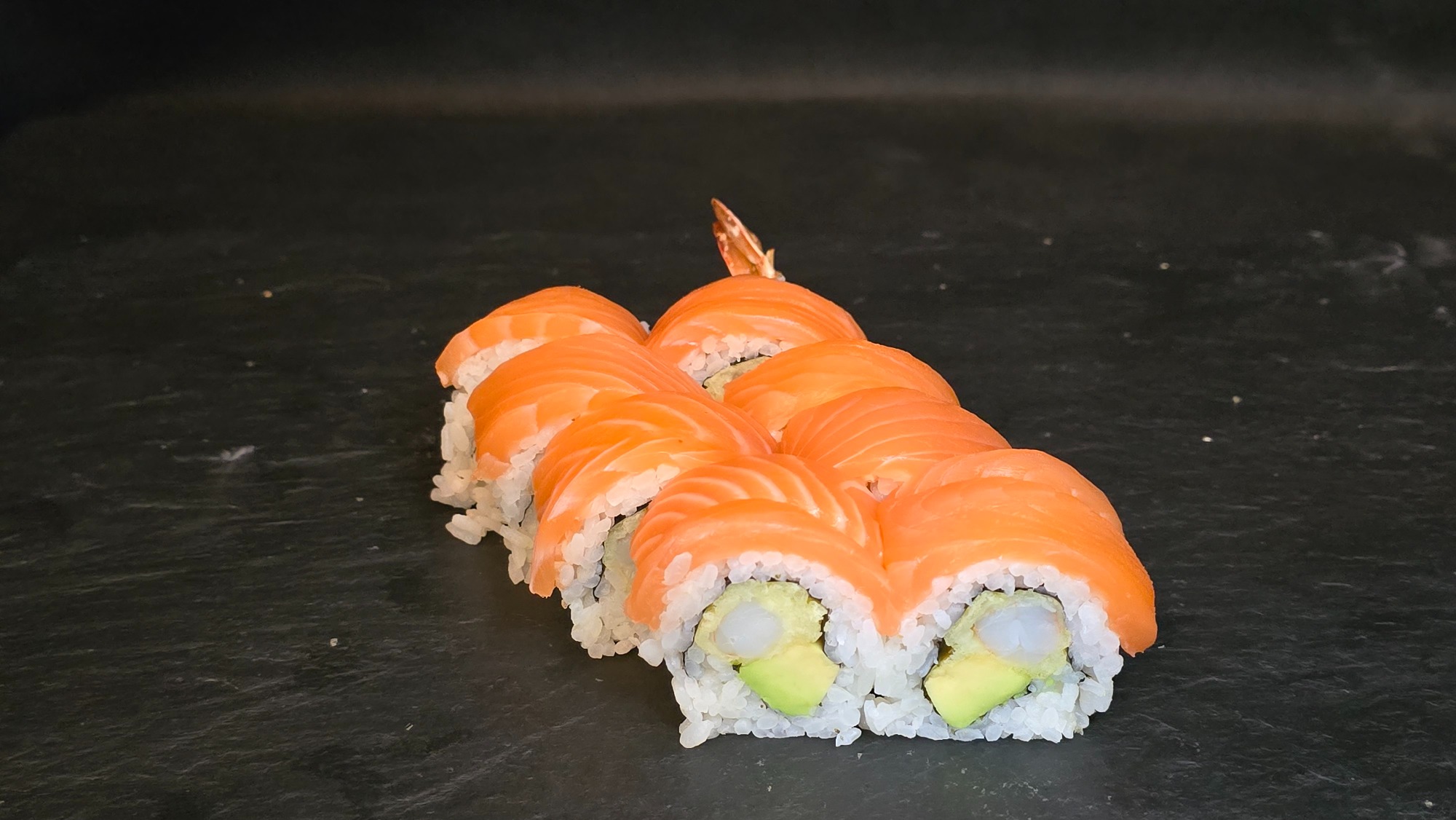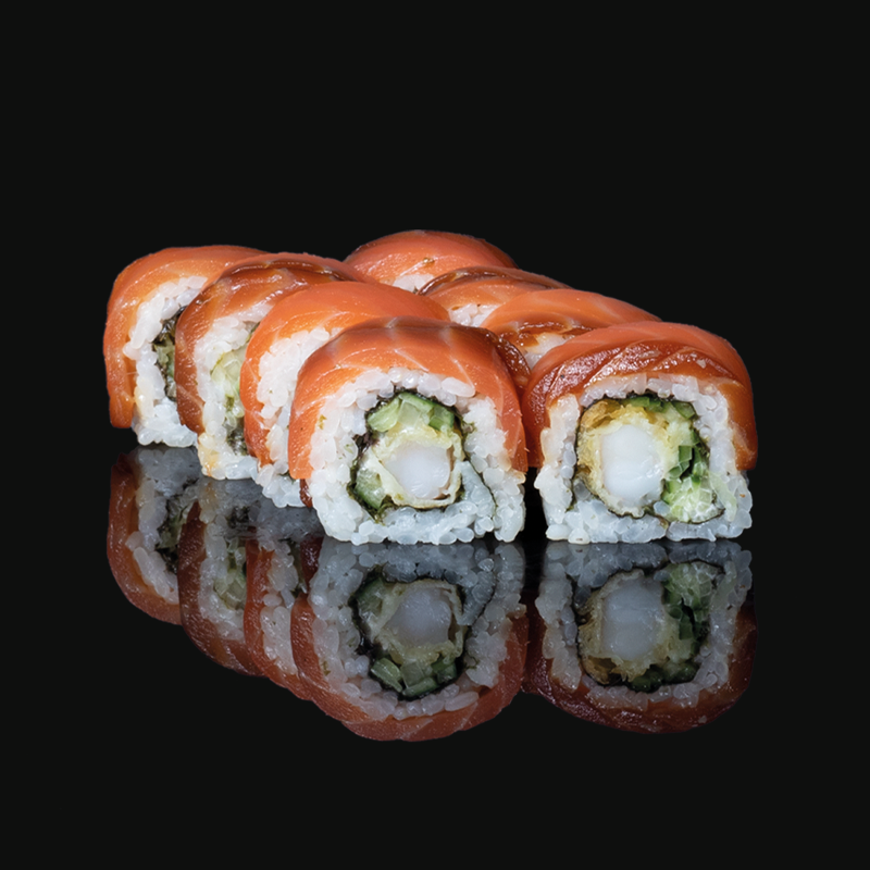 california maki z krewetkami w tempurze obkładane łososiem 8 szt.